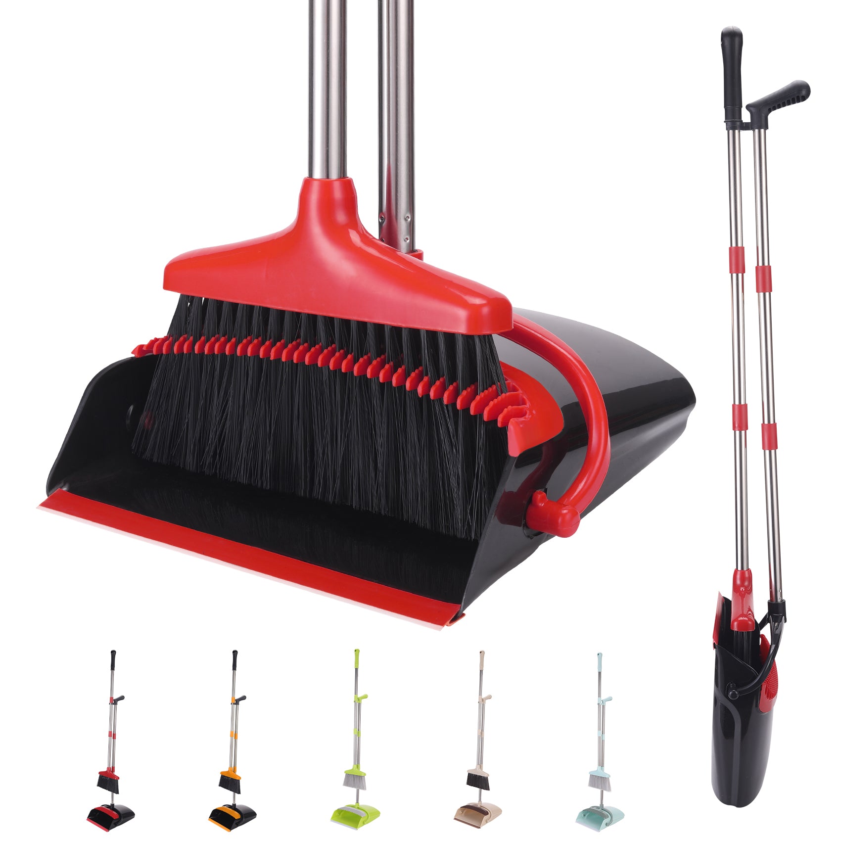 - [55.3" Long Handle Broom and Dustpan Set] Made of high-quality stainless steel poles with excellent performance in rust resistant, solid and light weight, which is easy to clean. Different people’s cleaning needs will be satisfied with the five extension poles which can be installed in different length. For example the children, adult and old man, especially for backache people, help you finish the sweeping jobs without bending.